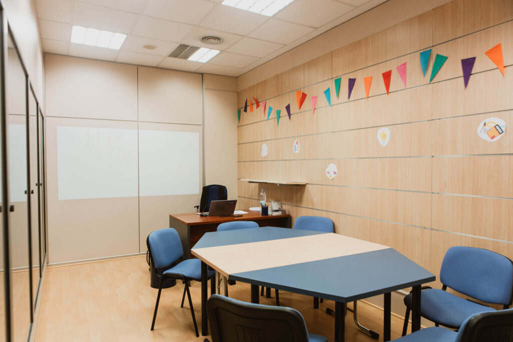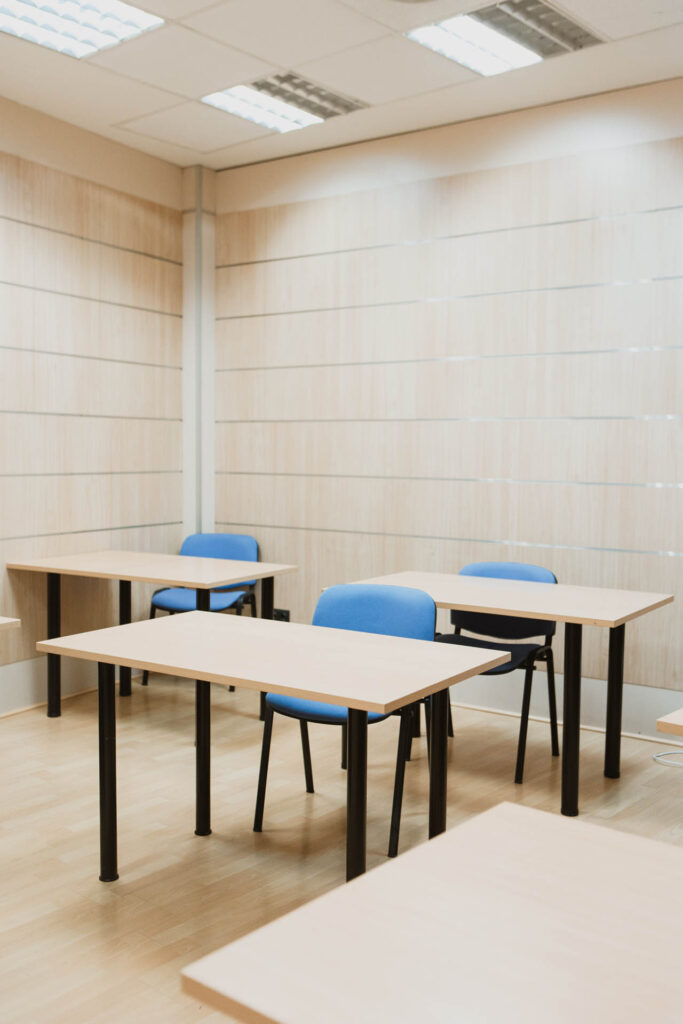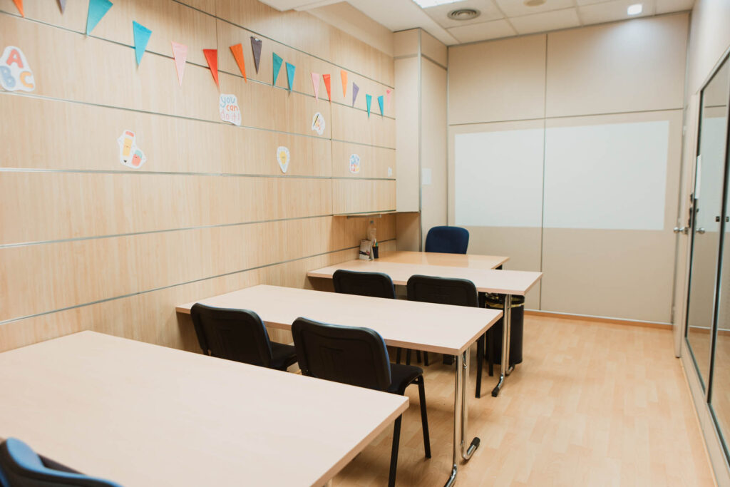 Nuestras aulas están distribuidas de manera que facilitan la interacción directa entre el profesor y cada alumno. El tamaño y la disposición del mobiliario permiten que los grupos sean pequeños y que cada estudiante reciba la atención individual que necesita.